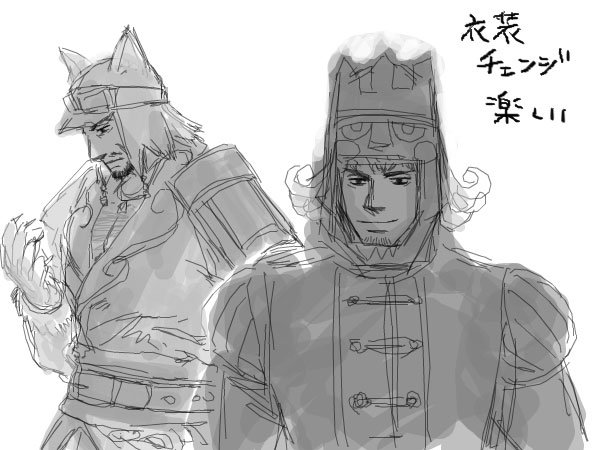 晋・その他の先行発表で英才教育とゲンキと呂布の衣装がお披露目になって、今から晋・その他の人々の服が楽しみでしょうがないです。名族と元文官が気になる。それにしても野獣呂布があまりに猿というか類人猿というかゴリラというか進化の枝分かれネアンデルタール方面というか、第一印象が「今にもドラミングしそう」だったというか、とりあえずひとしきり笑いました。猫張遼とお互い蚤取り(グルーミング?)すればいいと思う。