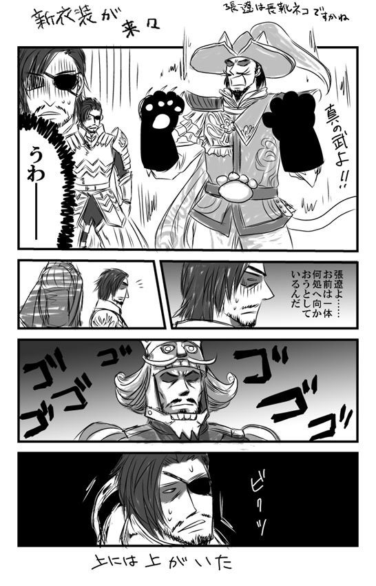 晋・その他の先行発表で英才教育とゲンキと呂布の衣装がお披露目になって、今から晋・その他の人々の服が楽しみでしょうがないです。名族と元文官が気になる。それにしても野獣呂布があまりに猿というか類人猿というかゴリラというか進化の枝分かれネアンデルタール方面というか、第一印象が「今にもドラミングしそう」だったというか、とりあえずひとしきり笑いました。猫張遼とお互い蚤取り(グルーミング?)すればいいと思う。