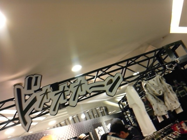 売ってる服がほぼ全てジョジョ柄というテンション上がらざるを得ないラインナップのお店です。店員さんも勿論ショップの服を着用。トップもボトムもどちらも柄でさらにこれも柄である吉良ネクタイを着用というアグレッシブなファッションスタイル。別の店員さんはブチャラティのジッパーパーカーがメインの黒基調なスタイルでした。まさに対極。